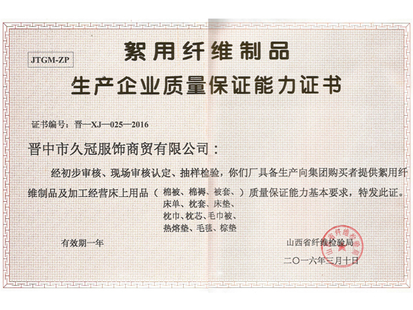 山西久冠服飾有限公司位于晉商故里山西省晉中市。公司注冊商標“久冠”,是山西省教育學會學生服被裝專業(yè)委員會會長單位,中國質(zhì)量萬里行促進會理事單位,中國教育裝備行業(yè)協(xié)會學校后勤裝備管理分會常務(wù)理事單位。
